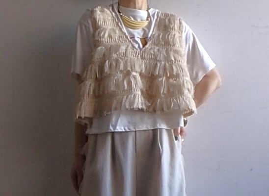 商品名:フリンジチュールVneckペプラムベスト